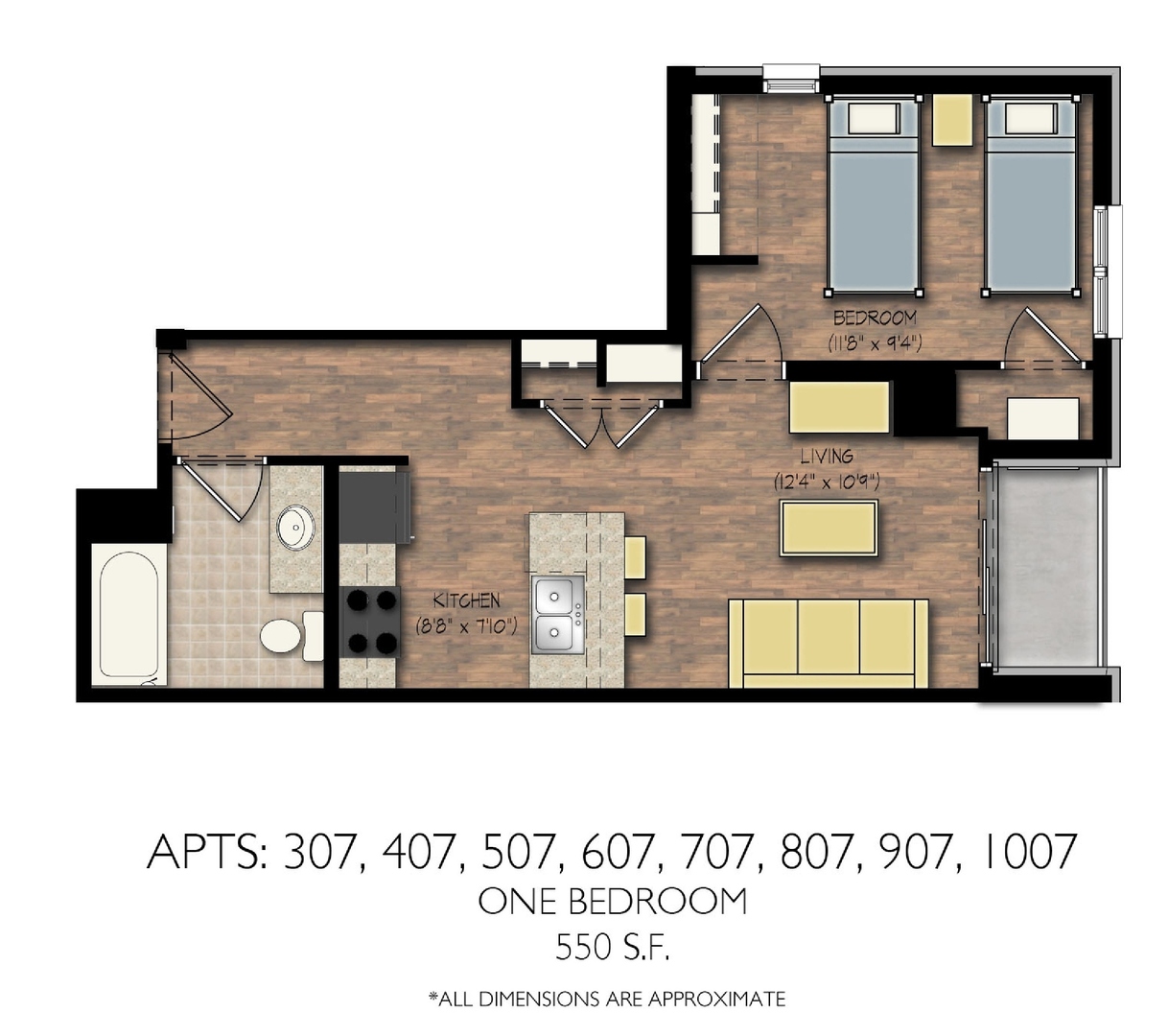1 Baths | 550 Sq. Ft.